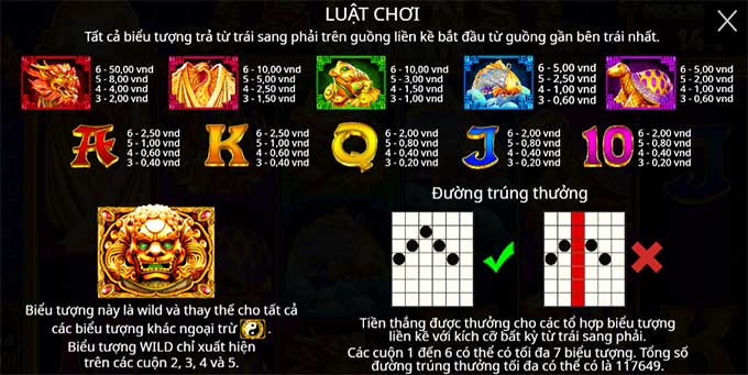 Wild có thể thay thế cho tất cả biểu tượng, ngoại trừ Bonus.