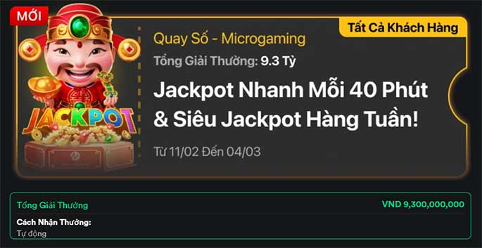• Mỗi vòng quay Jackpot được kích hoạt ngẫu nhiên, thành viên chỉ việc đặt cược vào trò chơi slot Microgaming.