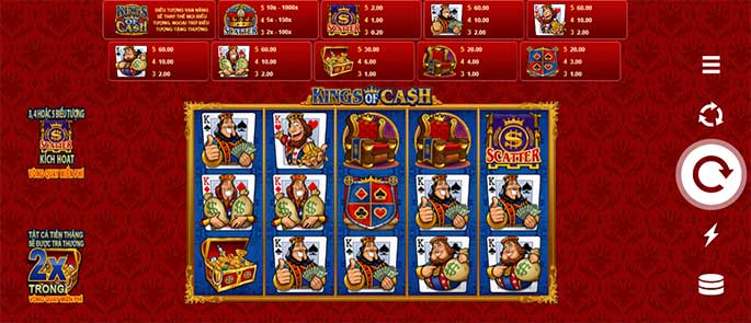 Ngoài tiền thưởng mà slot “Vua Tiền Mặt” mang đến cho người chơi, trò chơi còn nâng cao ước mơ quyền lực, ngai vàng, quyền trượng là những điều mà hầu như người chơi đều mong muốn nhưng mấy ai có được.